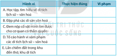 Câu 2. Những hành vi dưới đây thực hiện đúng hay vi phạm pháp luật về bảo vệ di sản văn hoá?
