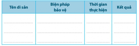 Câu 7. Em hãy lập và thực hiện kế hoạch bảo vệ một di sản ở địa phương em theo bảng sau: