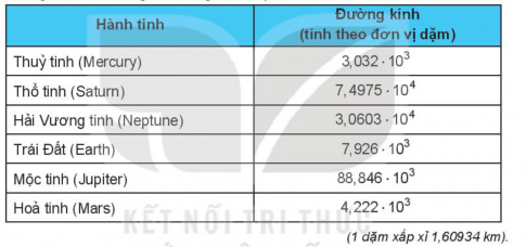 1.35. Bảng sau cho chúng ta đường kính xấp xỉ của một số hàn tinh.
