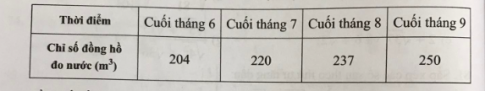 Tổng số tiền nước nhà bạn Hạnh phải trả trong Quý III là 354200 đồng. Tính số tiền nước nhà bạn Hạnh phải trả trong tháng của Quý III, biết rằng giá mỗi mét khối nước hằng tháng là như nhau.