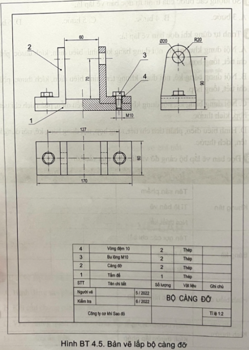 4.5 Đọc bản vẽ lắp bộ càng đỡ và điền kết quả vào bảng sau: