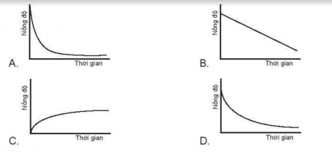 15.3. Biểu đồ nào sau đây không biểu diễn sự phụ thuộc nồng độ chất tham gia với thời gian