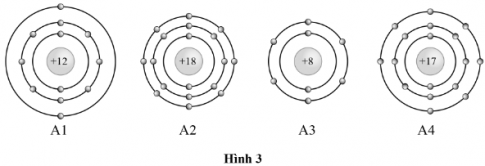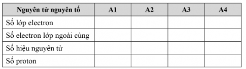 Bài tập 3.7. Quan sát mô hình cấu tạo của bốn nguyên tử thuộc bốn nguyên tố có kí hiệu lần lượt là A1, A2, A3, A4 dưới đây: