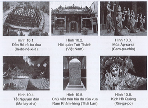 Câu 12: Quan sát các hình sau và dựa vào các kiến thức đã học, hãy xếp các thành tựu văn minh Đông Nam Á thời kì cổ - trung đại chịu ảnh hưởng của nền văn hoá Trung Hoa và Ấn Độ vào bảng theo mẫu sau sao cho phù hợp.