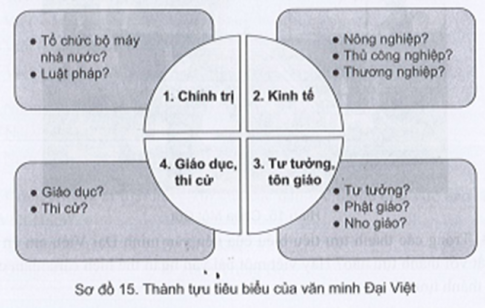 Câu 9: Hoàn thành sơ đồ 15 dưới đây về thành tựu tiêu biểu của nền văn minh Đại Việt.