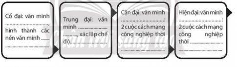 Bài 4: Điền vào chỗ trống các nền văn minh tương ứng với các giai đoạn phát triển của lịch sử nhân loại. Văn minh Văn Lang - Âu Lạc, Chăm-pa, Phù Nam và văn minh Đại Việt của Việt Nam thuộc giai đoạn nào của lịch sử văn minh thế giới?