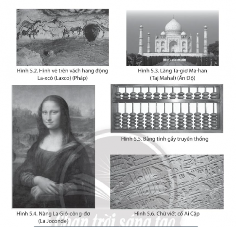 Bài 5: Xác định các hình ảnh đã cho là biểu hiện của văn hoá hoặc văn minh và sắp xếp vào các ô phù hợp.