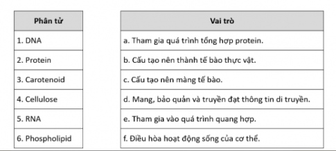 6.8. Hãy ghép các phân tử sinh học sau đây cho đúng với vai trò của chúng.