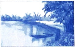 Quê hương tôi có con sông xanh biếc ![]() Nước gương trong soi tóc những hàng tre Tâm hồn tôi là một buổi trưa hệ Toả nắng xuống lòng sông lấp loáng |