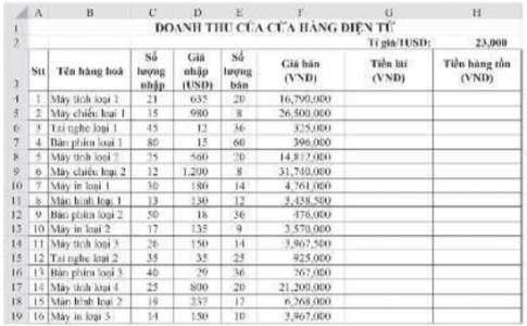 a) Lập công thức tính Tiền lãi cho mặt hàng đầu tiên tại ô tính G4, với cách tính sau: