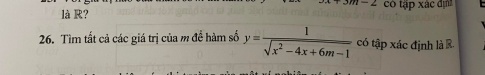 Bài 26 : Tìm tất cả các giá trị của m để hàm số y có tập xác định là R.