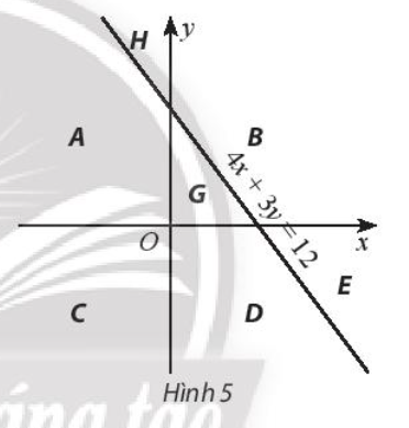 Bài 2 : Đường thẳng 4x + 3y = 12 và hai trục tọa độ chia mặt phẳng Oxy thành các miền như Hình 5. Hãy tìm hệ bất phương trình có miền nghiệm là miền B (kể cả bờ).