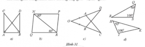 a) $\Delta CAB=\Delta DBA$ (Hình 31a)