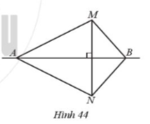Bài 62. Quan sát Hình 44, biết $\Delta MAB= \Delta NAB$. Chứng minh đường thẳng AB là đường trung trực đoạn thẳng MN