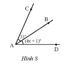 Bài 1. Cho biết AB là tia phân giác $\widehat{CAD}$. Tìm giá trị của x.