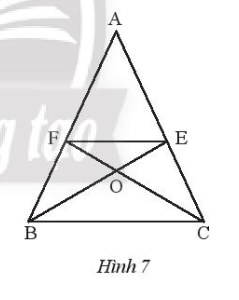 Bài 4. Cho Hình 7, biết AB = AC và BE là tia phân giác của $\widehat{ABC}$; CF là tia phân giác của $\widehat{ACB}$. Chứng minh rằng: