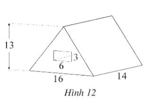 Bài 7. Một khối bê tông hình lăng trụ đứng tam giác, bên trong khoét một cái lỗ có kích thước như hình 12 (đơn vị dm). Tính thể tích của khối bê tông.