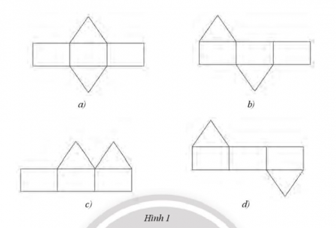 Bài 6. Trong bốn tấm bìa dưới đây, tấm nào không thể gấp thành hình lăng trụ đứng tam giác?