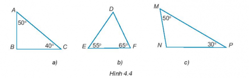 4.2. Trong tam giác dưới đây (H.4.4), tam giác nào là nhọn, vuông, tù?