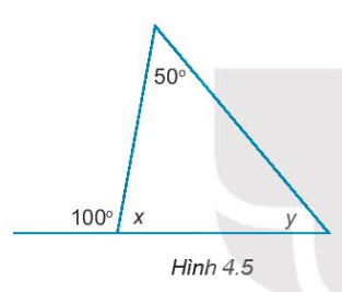 4.3. Tìm các số đo góc x, y trong Hình 4.5.