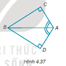4.35. Cho bốn điểm A, B, C, D như Hình 4.37. Biết rằng $\widehat{DAB}=\widehat{CAB}$, hãy chứng minh CB = DB.