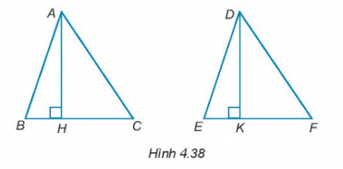 4.37. Cho AH và DK lần lượt là hai đường cao của tam giác ABC và DEF như Hình 4.39. Chứng minh rằng: