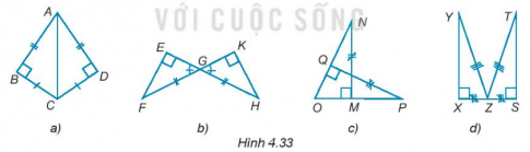 4.31. Trong mỗi hình sau (H.4.33) có các cặp tam giác vuông nào bằng nhau? Vì sao?