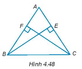 4.43. Tam giác ABC có hai đường cao BE và CF bằng nhau (H.4.48). Chứng minh rằng tam giác ABC cân tại đỉnh A.