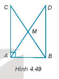 4.44. Cho tam giác ABC vuông tại đỉnh A. Gọi M là trung điểm của BC và D là điểm nằm trên tia đối của tia MA sao cho MD = MA (H.4.49). Chứng minh rằng: