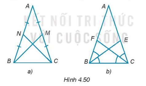 a) Hai đường trung tuyến BM, CN bằng nhau (H.4.50a).