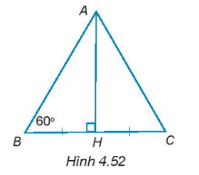 4.47. Cho tam giác ABH vuông tại đỉnh H có $\widehat{ABH}=60^{\circ}$. Trên tia đối của tia HB lấy điểm C sao cho HB = HC (H.4.52). Chứng minh rằng ∆ABC là tam giác đều và BH =$\frac{AB}{2}$