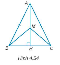 4.50. Cho tam giác ABC cân tại đỉnh A có đường cao AH. Cho M là một điểm tùy ý trên đường thẳng AH sao cho M không trùng với A (H.4.54). Chứng minh rằng: $\widehat{MBA}=\widehat{MCA}$