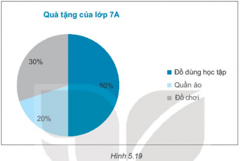 5.27. Nhà trường vận động mỗi bạn tặng một món quà cho các bạn học sinh vùng lũ lụt. Biểu đồ Hình 5.19 biểu diễn tỉ lệ học sinh lớp 7A tặng các món quà khác nhau.