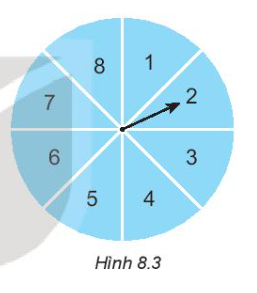 8.11. Một tấm bìa cứng hình tròn được chia làm tám phần có diên tích bằng nhau và ghi các số 1; 2; 3; 4; 5; 6; 7; 8; được gắn vào trục quay có mũi tên như hình 8.3