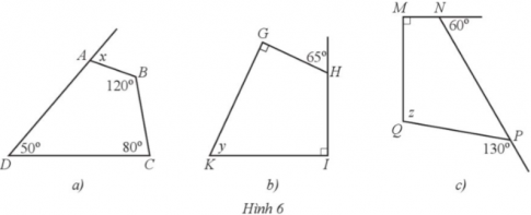 Tính các số đo x, y, z ở các hình 6a, 6b, 6c: