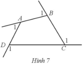 Góc kề bù với một góc của tứ giác được gọi là góc ngoài của tứ giác. Chứng minh tổng các góc ngoài của tứ giác ABCD ở Hình 7 (tại mỗi đỉnh chỉ chọn một góc ngoài): $\widehat{A_{1}}+\widehat{B_{1}}+\widehat{C_{1}}+\widehat{D_{1}}$ = 360°.