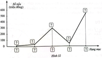 a) Hãy hoàn thiện biểu đồ ở Hình 32 để nhận được biểu đồ đoạn thẳng biểu diễn số tiền bác Long cần phải chuẩn bị cho các hạng mục theo dự tính như trên.