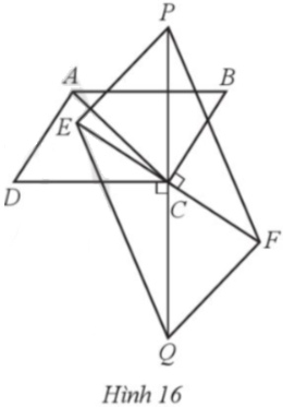 Cho hình bình hành ABCD có $\widehat{A}$ > 90°, AB > BC. Trên đường thẳng vuông góc với BC tại C lấy hai điểm E, F sao cho CE = CF = BC. Trên đường thẳng vuông góc với CD tại C lấy hai điểm P, Q sao cho CP = CQ = CD (Hình 16). Chứng minh: