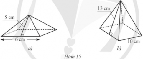 Tính diện tích xung quanh của hình chóp tứ giác đều ở mỗi hình 15a, 15b: