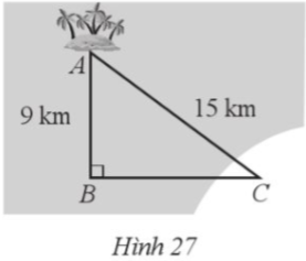 Một công ty dự định làm một đường ống dẫn từ một nhà máy ở địa điểm C trên bờ đến một địa điểm B trên biển. Khoảng cách giữa địa điểm A trên đảo với địa điểm B, địa điểm C lần lượt là 9 km, 15 km; AB vuông góc với BC (minh hoạ ở Hình 27). Giá làm 1 km đường ống là 5 000 đô la Mỹ. Hỏi chi phí làm đường ống từ địa điểm C đến địa điểm B là bao nhiêu đồng?
