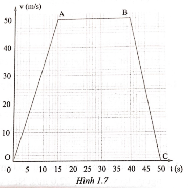 1.52 Một ô tô chuyển động trên đường thẳng. Đồ thị vận tốc – thời gian của nó được biểu diễn ở hình 1.7.