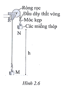 - Bố trí thiết bị thí nghiệm như hình 2.6. Ở mỗi vị trí M và N, móc kẹp kẹp 10 miếng thép, mỗi miếng thép có khối lượng 50 g.