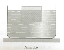 2.44 Một khối lập phương có cạnh 0,20 m nổi trên mặt nước như hình 2.8, phần chìm dưới nước cao 0,15 m. Khối lượng riêng của nước là 1000kg/m$^{3}$.