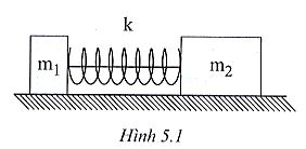 5.15 Cho hệ vật như hình 5.1. Ban đầu hai vật được giữ sao cho lò xo bị nén một đoạn 10,0 cm (lò xo nhẹ và không gắn vào vật) sau đó đốt sợi dây nối hai vật. Biết độ cứng của lò xo k = 45,0 N/m; m$_{1}$ = 0,50 kg; m$_{2}$ = 1,50 kg. Bỏ qua lực ma sát và lực cản của không khí tác dụng lên các vật.