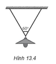 13.12 Một cái đèn được treo vào hai sợi dây giống nhau như Hình 13.4. Biết trọng lượng của đèn là 25 N, hai dây làm thành góc 60°. Xác định lực căng của dây.