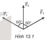 13.9 Một chất điểm chịu tác dụng của ba lực $\vec{F_{1}},\vec{F_{2}},\vec{F_{3}}$có cùng độ lớn 12 N. Biết góc tạo bởi các lực $(\vec{F_{1}},\vec{F_{2}})$ = $(\vec{F_{2}},\vec{F_{3}})$ = 60$^{o}$ (Hình 13.1). Hợp lực của ba lực này có độ lớn là