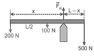 21.4 Một đường ống đồng chất có trọng lượng 100 N, chiều dài L, tựa trên điểm tựa như Hình 21.3. Khoảng cách x và phản lực FR của điểm tựa tác dụng lên đường ống là