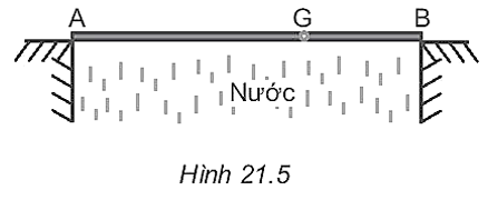21.6 Một tấm ván nặng 150 N được bắc qua một con mương. Biết trọng tâm G của tâm ván cách điểm tựa A một khoảng là 2 m và cách điểm tựa B một khoảng 1 m (Hình 21.5). Hãy xác định lực mà tấm ván tác dụng lên hai bờ mương.