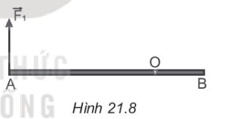 21.9 Một cái thước AB = 1,2 m đặt trên mặt bàn nhẵn nằm ngang, có trục quay O cách đầu A một khoảng 80 cm (Hình 21.8). Một lực F1 = 5 N tác dụng lên đầu A theo phương vuông góc với thước và lực thứ hai tác dụng lên đầu B của thước theo phương vuông góc với thước (không vẽ trên hình). Các lực đều nằm trên mặt phẳng nằm ngang. Nếu thước không chuyển động thì lực tác dụng vào đầu B của thước có hướng và độ lớn như thế nào?