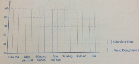 Dựa vào bảng số liệu 34.1 trong sách giáo khoa (SGK), em hãy: Vẽ biểu đồ cột chồng thể hiện tỉ trọng một số sản phẩm tiêu biểu của ngành công nghiệp Đông Nam Bộ so với cả nước năm 2001.